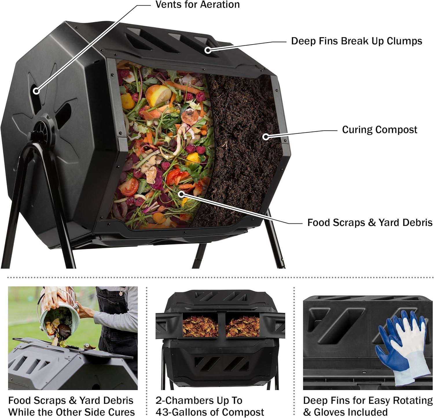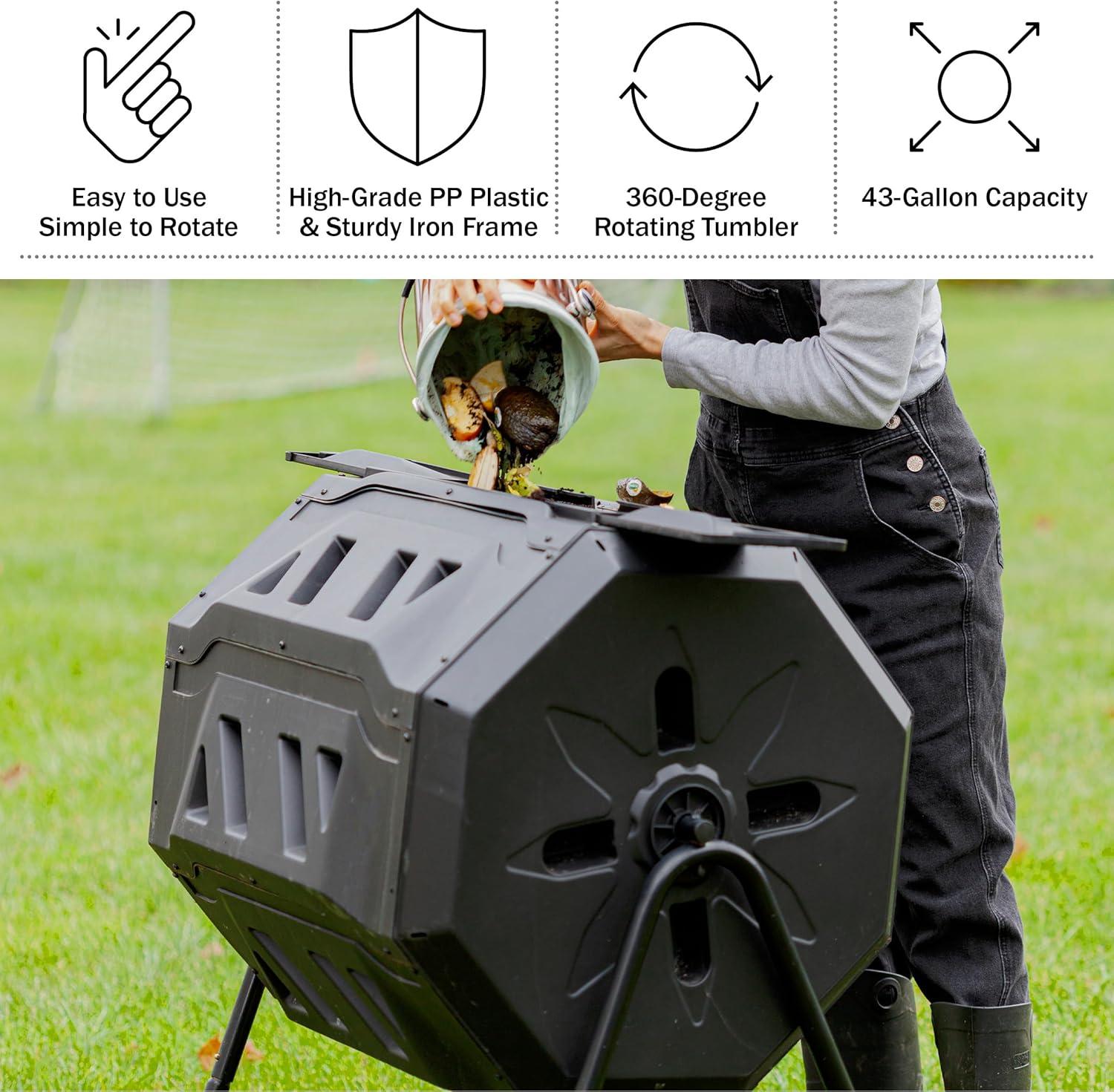 Make your garden grow bigger and healthier than ever before with the Compost Starter by Pure Garden. This compost bin outdoor features a large 43-gallon rotating tumbler that features dual chambers, perfect for adding in new food waste, decaying leaves, and more into one side while the other side continues to cure for a continuous supply of rich compost in just 6-8 weeks. These compost bins can be used outdoors in your garden, in the yard, on your patio, or anywhere else that gets direct sunlight, and they make the perfect homesteading gifts for those who enjoy growing their own food. Important: Pure Garden is committed to providing the consumer with the absolute best price and value on all of our products. Note: This is an exclusive product of Pure Garden and only Compost Bins Outdoor Garden by Pure Garden are guaranteed to be genuine. Avoid buying counterfeit products and transacting with unauthorized sellers.